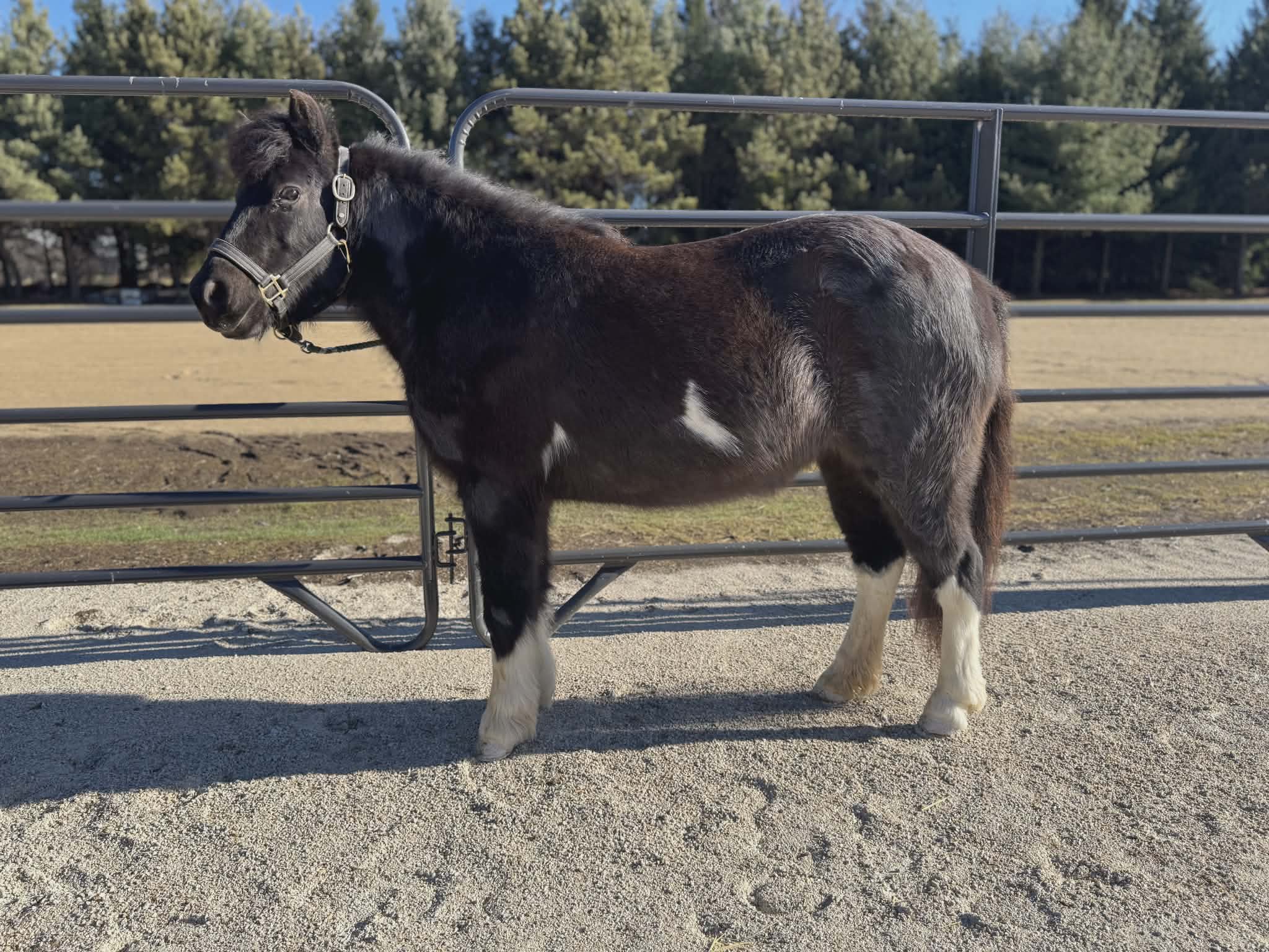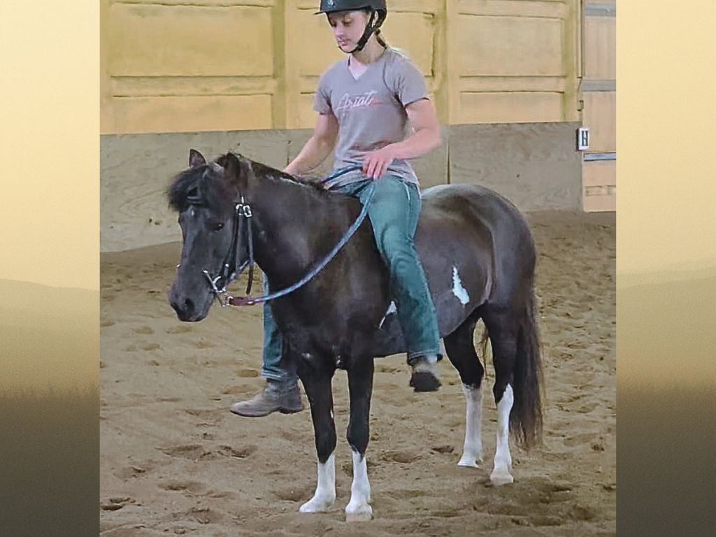 8-Year-Old Pony Mare. 11.2 hands. This handy little pony mare is fun! Hedwig is best suited for a rider who wants a pony that enjoys having a job. She’s smart, curious, and always willing—definitely not the babysitter type, but a great partner for a kid ready to step up. She’s truly a been there and done that—trail ridden through rough terrain, crossed water, roped off, worked cattle, worked in the arena, and exposed to just about everything. She’s not spooky and takes new situations in stride. She’s easy to catch, loads and hauls like a pro, ties quietly, great for farrier care (little kids can handle her feet). She’s UTD on all care including dental, goes barefoot, and has no history of founder. During the summer months she does require a fly sheet, as bugs bother her. She completed a 60-day professional tune-up in June–July 2025, where she was loping barrels, doing WSCA games, trail riding, jumping, continuing arena work.