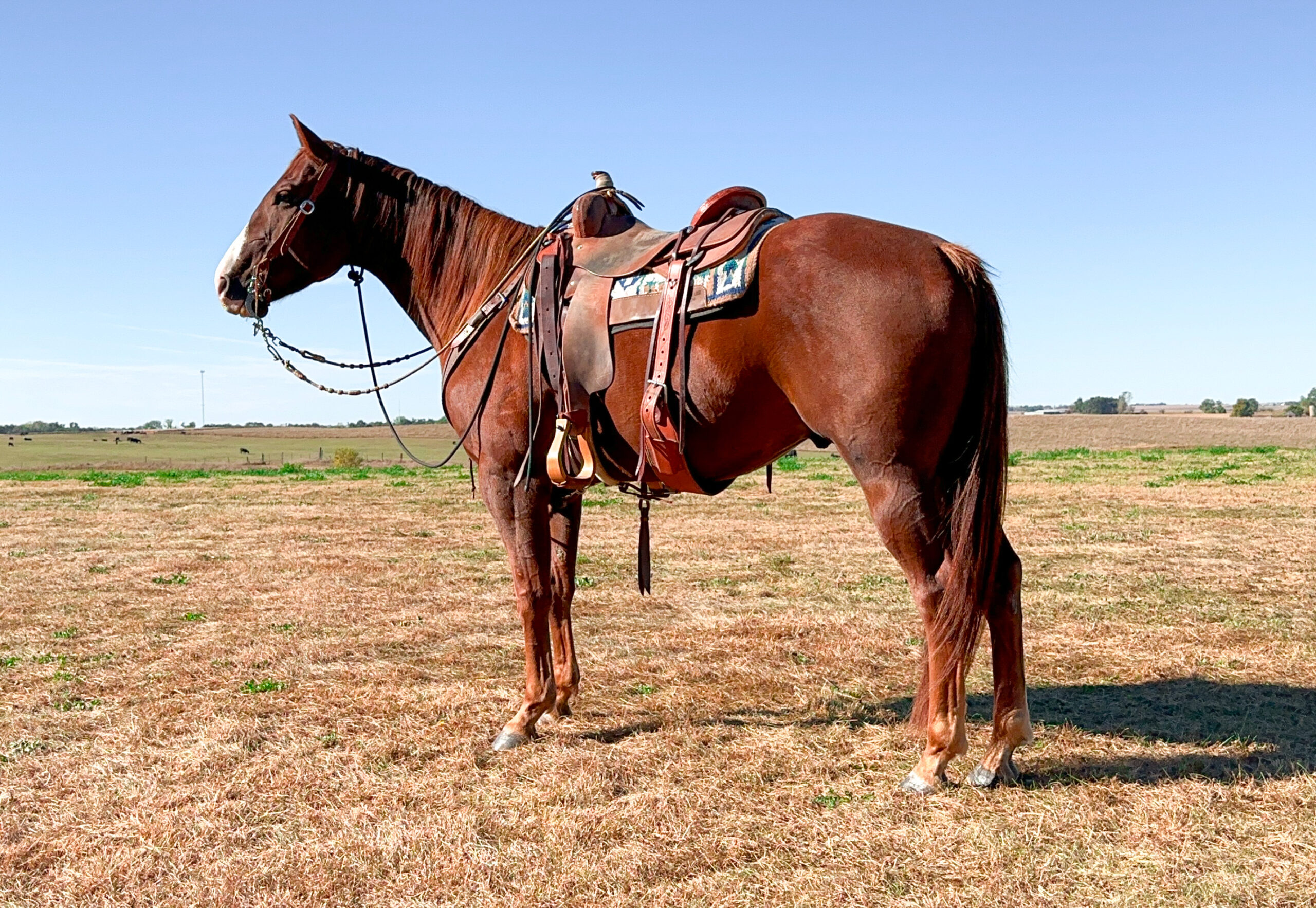 Meet Mochacho, a 7-year-old Reg, who’s basically the horse version of a yoga instructor – calm, cool, and collected. Standing at 15.3hh and 1100lbs, this gentle giant is perfect for anyone looking for a safe and enjoyable ride. He’s like the horse equivalent of a comfy pair of slippers – forgiving, reliable, and always up for a good time. whose calm demeanor makes him an ideal companion for a safe and enjoyable ride. With his exceptionally forgiving nature, he’s perfect for beginners, kids, and those seeking a reliable partner. Mochacho excels in his own unique way, boasting a silky-smooth gait, light and responsiveness to the bit, and a multitude of buttons to explore. His impressive resume includes long days of ranch work, brandings, lessons, trail riding, and cattle gathering, all of which he’s tackled with ease and a willing attitude. Mochacho is up to date on vaccinations, dental care, and trimming, and thrives in various settings. Whether you’re looking for a trusty companion or a reliable workhorse, Mochacho is sure to exceed expectations and bring a sense of optimism and empowerment to your life.