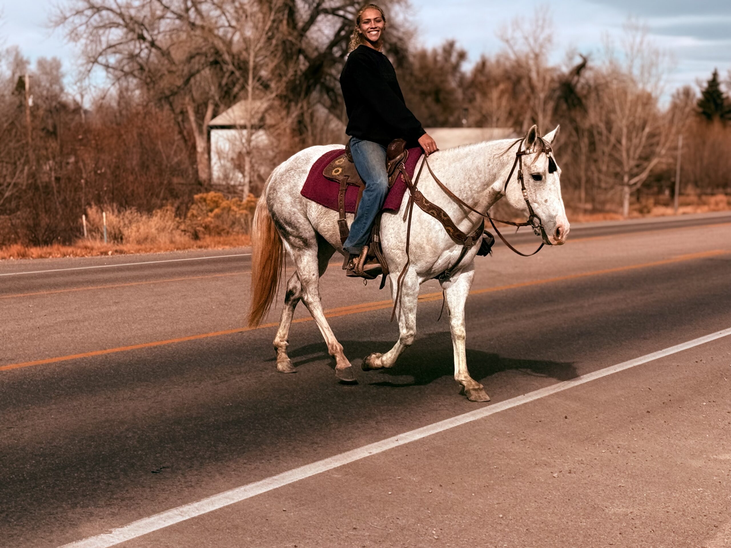 If you’re looking for a confident, reliable, and absolutely stunning mare that’s ready for any direction, Ocean is the one. With her striking gray dappled coat, strong build, and a heart that loves a job, she’s the kind of horse that leaves a lasting impression wherever she goes, not even mentioning her absolutely breathtaking aqua blue eye.