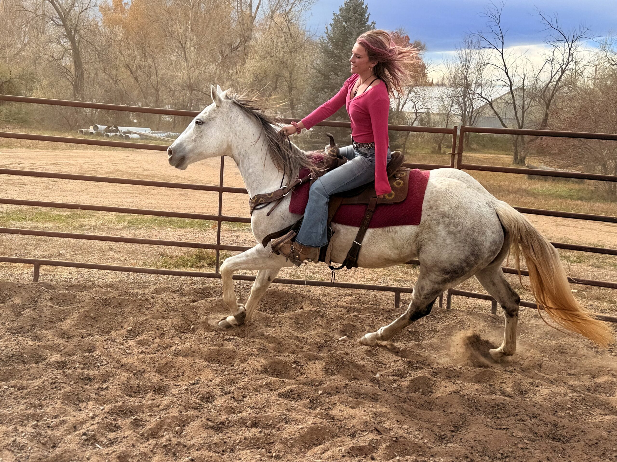 Out on the ranch, Ocean has pushed cattle, worked fences, and had a rope thrown off of her. She’s confident, responsive, and surefooted in rough country. She crosses water, goes over bridges, and moves easily through challenging terrain. Her calm, steady demeanor makes her a reliable partner in high-pressure situations.