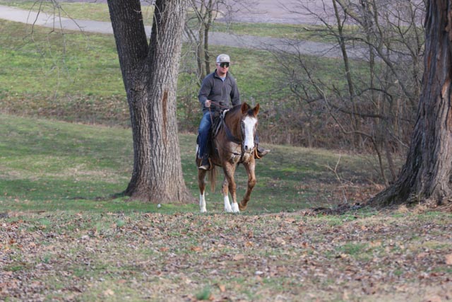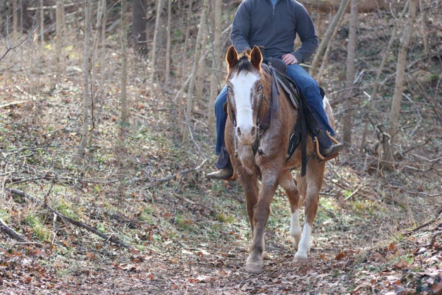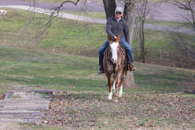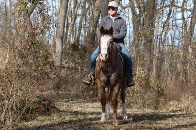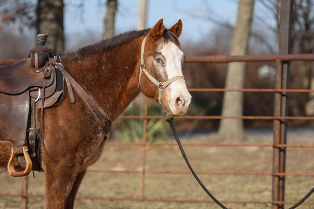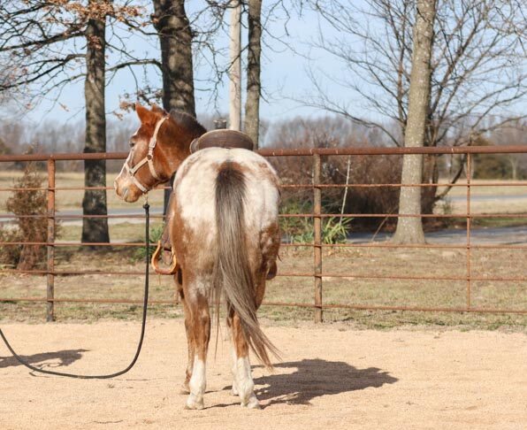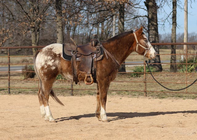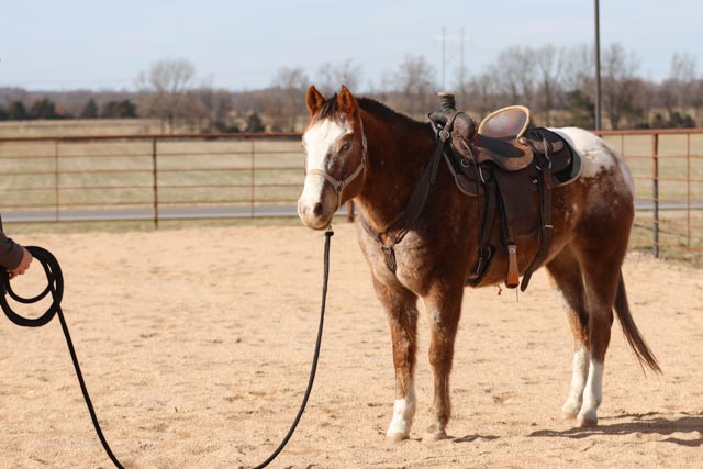 He is simple to have around. He loads and unloads easily, stands tied quietly, saddles and bridles without trouble, and gets along with other horses. Rambo is gentle, patient, and wants to please.