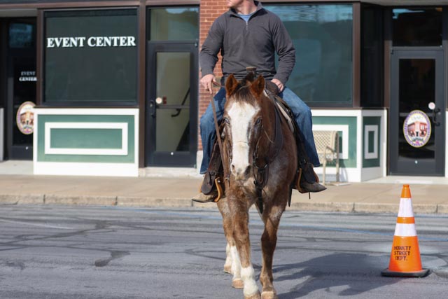 We’ve ridden him in town he is traffic safe and loves people. He would prefer to walk trot but is always willing to lope when asked.