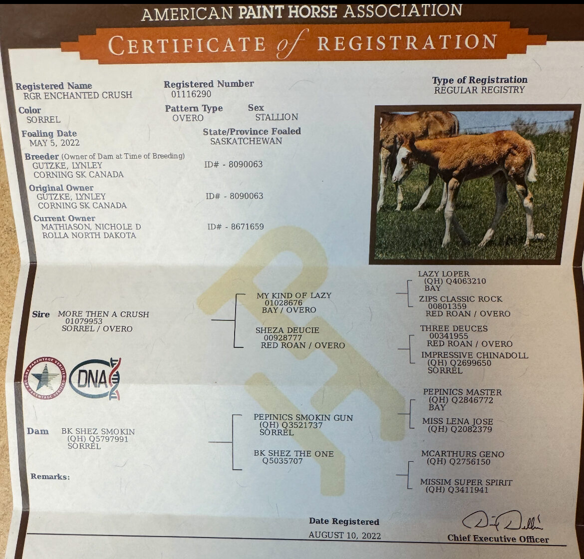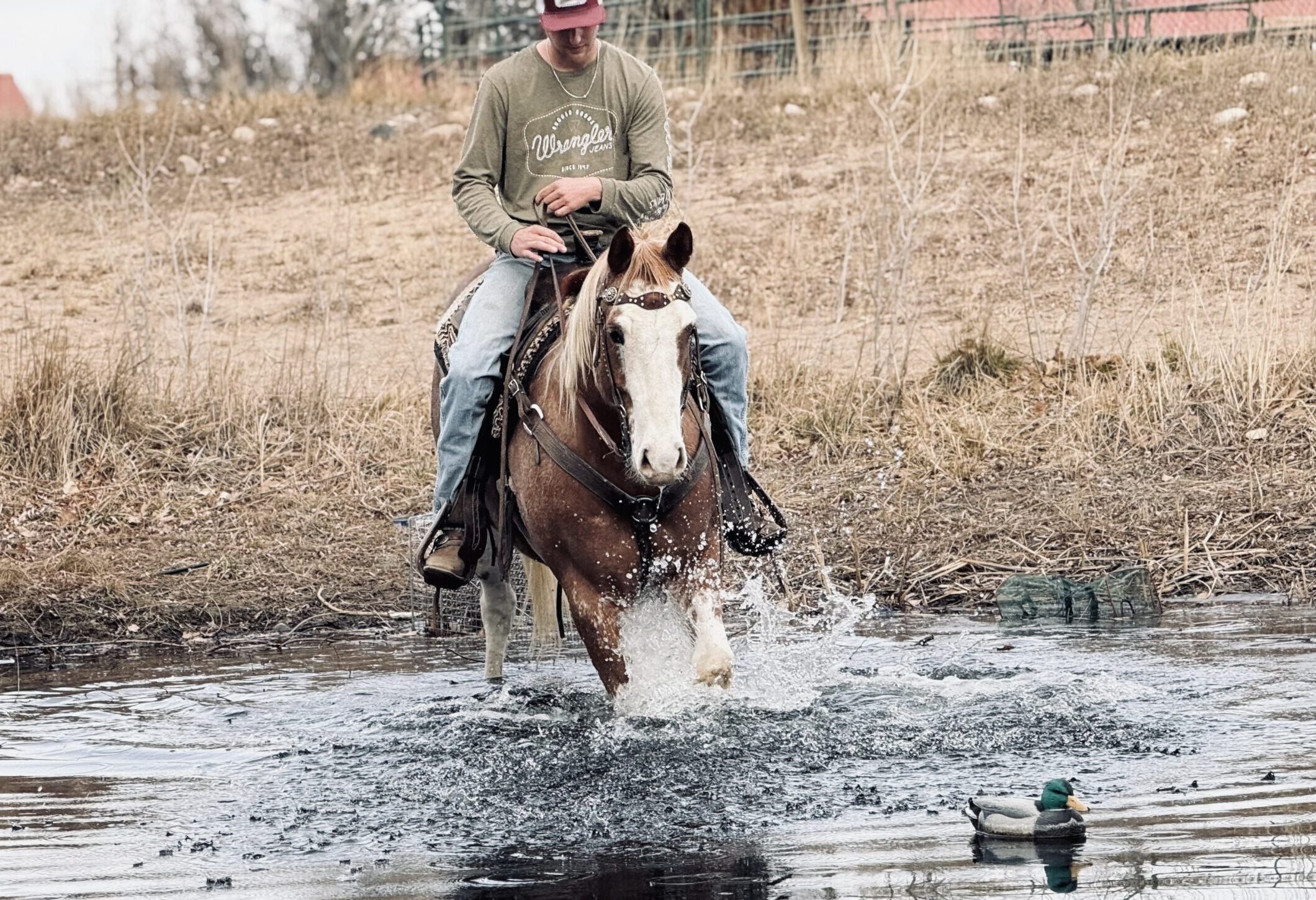 “Chevy” is a striking registered APHA gelding standing a solid 16.1 hands, built like a tank with textbook conformation, strong feet, and an exceptional mind to match. His presence is as powerful as his pedigree — this is a gelding bred to impress and trained to perform.